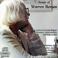 Five Lyrics of Louise Bogan – Jan DeGaetani, mezzo soprano and Bonita Boyd, flute. Songs of Warren Benson. Also Moon Rain and Memory Jane. Gasparo GSCD 261.